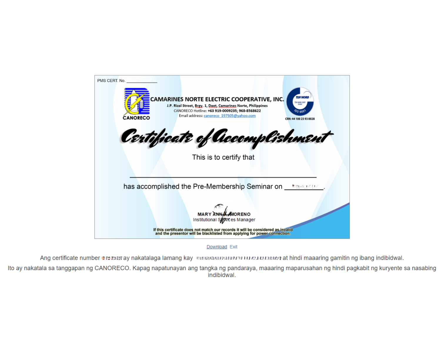 CANORECO is located at Brgy. Itomang, Talisay, Camarines Norte