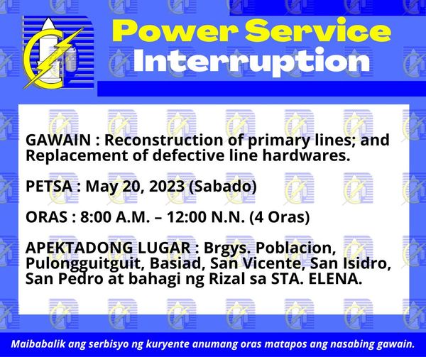 Maaaring maibalik ang serbisyo ng kuryente anumang oras matapos ang nasabing gawain. Para sa kaligtasan ng mga miyembro-konsumidores, parating ituring na may kuryente ang mga linya at mga kagamitan sa lahat ng oras.