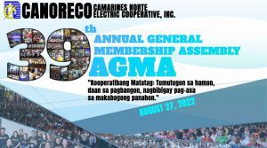 Isasagawa ang 39th Annual General Membership Assembly (AGMA) ng CANORECO sa darating na August 27, 2022, araw ng Sabado, mula 1:00 ng hapon sa pamamagitan muli ng Facebook Live Stream sa Facebook account ng kooperatiba na Canoreco Balita.