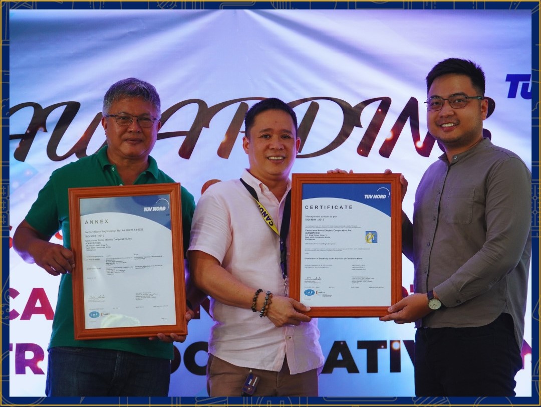 Sa wakas, opisyal na ang pagiging International Organization for Standardization (ISO) 9001:2015 Certified ng Camarines Norte Electric Cooperative, Inc. (CANORECO) – ang kooperatiba ng kuryente ng lalawigan ng Camarines Norte.