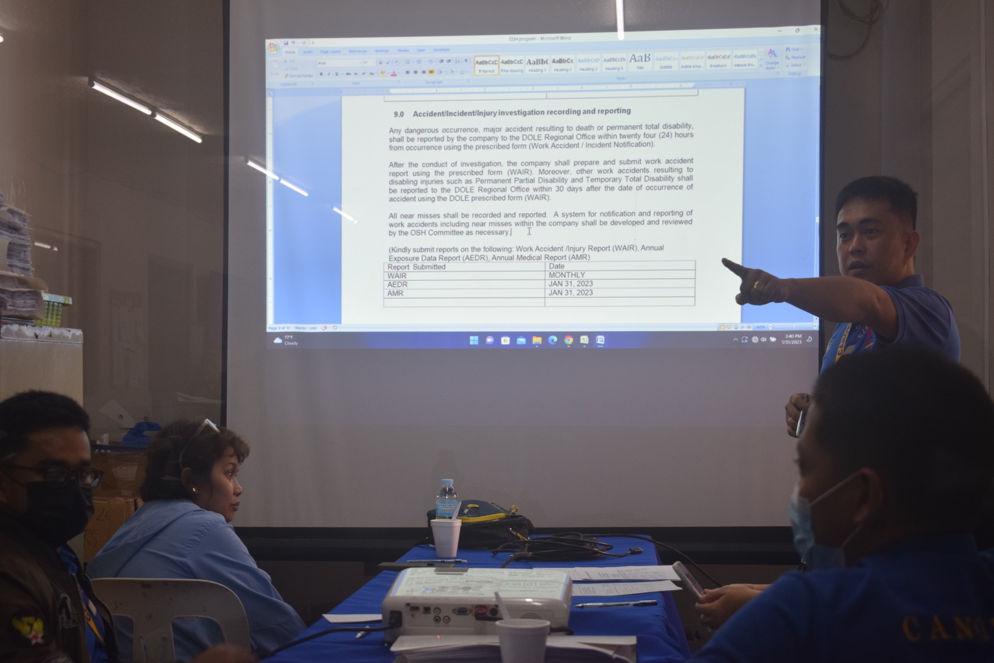 TINGNAN. Naganap nitong Martes, 31 January 2023, ang meeting ng CANORECO Occupational Safety and Health Committee sa Conference Room, CANORECO Main Office sa bayan ng Talisay. Pinangunahan ng Safety Officer ng CANORECO na si Engr. Reymond L. Rada ang nasabing meeting.