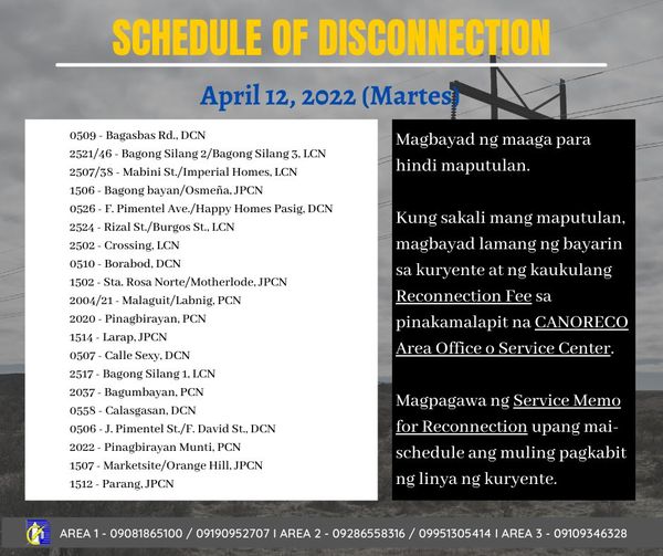 Magbubukas ang TELLERING ng CANORECO sa Daet Main Office, Labo Area office, Bagong Silang, Sta. Elena, Capalonga, Batobalani Area office, Paracale, at Jose Panganiban sa darating na Special Non Working Day, February 12, 2021, araw ng Biyernes, upang tumanggap ng bayad. Dalhin lamang ang billing statement sa inyong pagbayad! Maraming Salamat po!