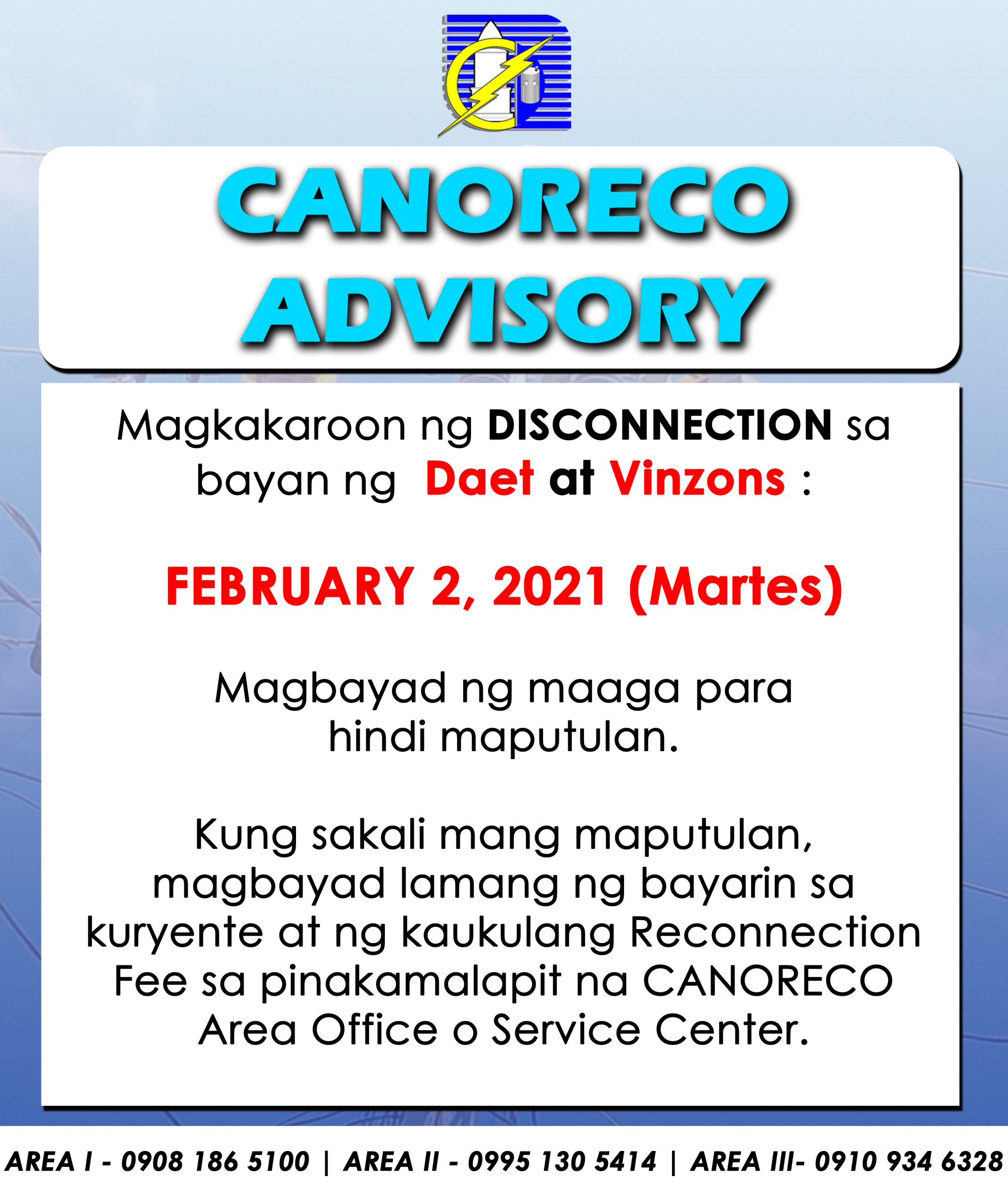 Paliwanag sa Naganap na Power Service Interruption Ngayong Araw ng Martes (5 August 2025) Mula 10:25PM Hanggang 10:48PM Nais ipabatid ng Kooperatiba ang naranasang power service interruption ngayong araw ng Martes, 5 August 2025, mula 10:25 hanggang 10:48 ng gabi sa ilang barangay ng BASUD at MERCEDES. Narito ang mga detalye ng insidente: > 10:25PM […]