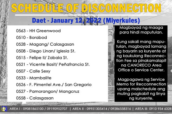 Magkakaroon ng DISCONNECTION sa mga sumusunod na lugar sa bayan ng LABO: SEPTEMBER 24, 2021 (BIYERNES) – Tulay na Lupa – Cabusay – Fundado – Rizal / Dalas St. – Bautista – Malasugui / Guinacutan – Iberica – Plaridel / Dalas – Malangcao-basud / Core Shelter – Lugui / Mabilo – Bulhao / Bakiad / […]