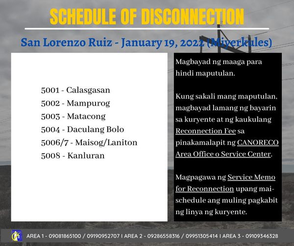 Ang nararanasang biglaang pagkawala ng kuryente ngayong June 3, 2025 na nagsimula ng 10:46 ng umaga hanggang sa kasalukuyan ay dahil sa naputol na Primary Line malapit sa Grand Terminal ng Labo. APEKTADONG LUGAR : > Brgys. Talobatib, Calabasa, Matanlang, Pag-asa, Maot, Daguit, Macogon, Exciban, Dumagmang at ilang bahagi ng Bagong Silang 1, Bulhao, at […]