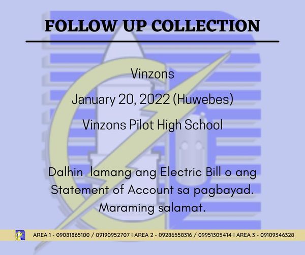 PETSA : June 16, 2024 (Linggo) ====================================================== GAWAIN : Annual preventive maintenance of Malatap 5 MVA Substation; Line maintenance activities. ORAS : 08:00 A.M. – 12:00 P.M. (4 Oras) APEKTADONG LUGAR : Mga bayan ng SANTA ELENA at CAPALONGA; Barangay Talobatib, Mahawan-hawan, Pangpang; Calabasa, Maot, Pag-asa, Malancao-Basud, Daguit, Macogon, Exciban, Dumagmang, Bagong Silang 1, 2, […]