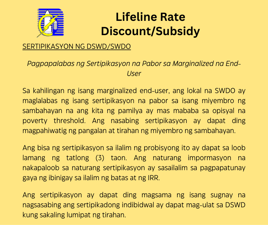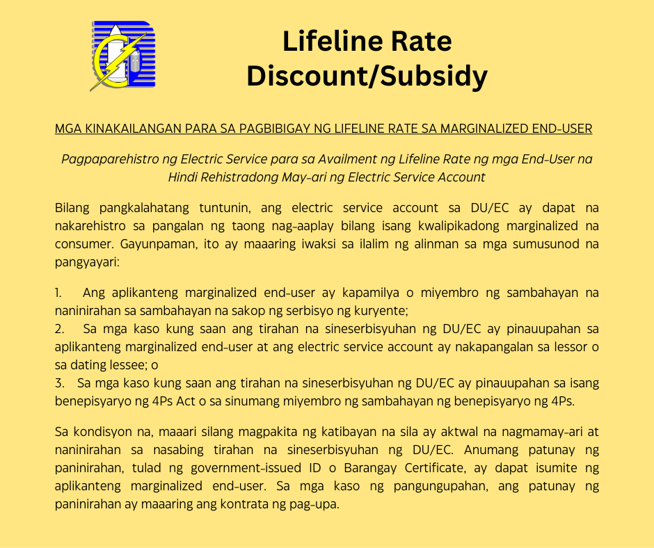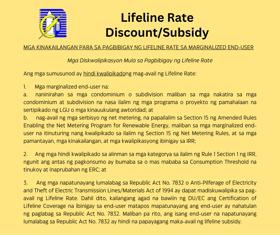 𝐁𝐀𝐒𝐀𝐇𝐈𝐍 𝐚𝐭 𝐀𝐋𝐀𝐌𝐈𝐍: Ang mga impormasyon tungkol sa Lifeline Rate Discount/Subsidy ng Republic Act (RA) No. 11552, at ng DOE, ERC at DSWD Joint Resolution No. 01, Series of 2022.