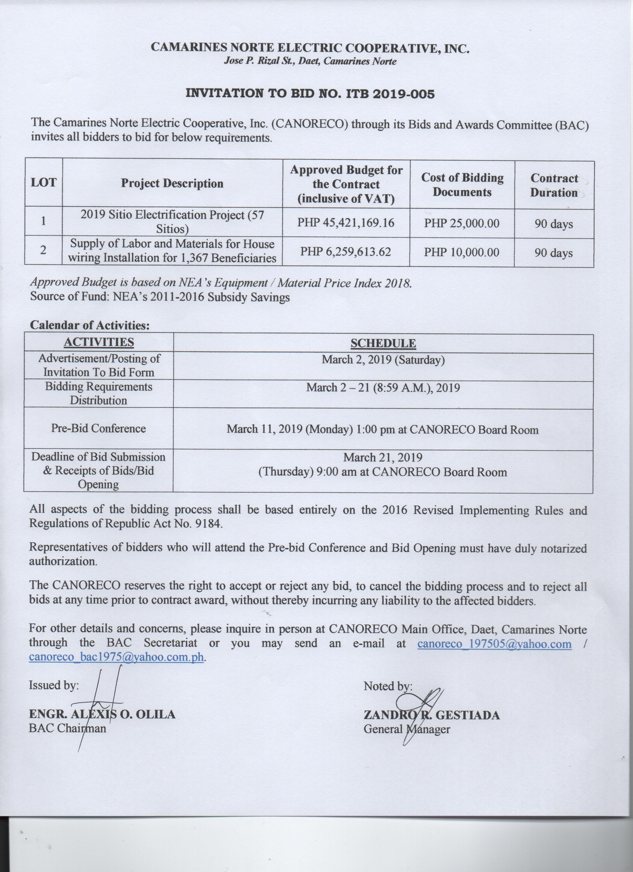 MARCH 13, 2019 CANORECO POWER SERVICE INTERRUPTION AREA 3
