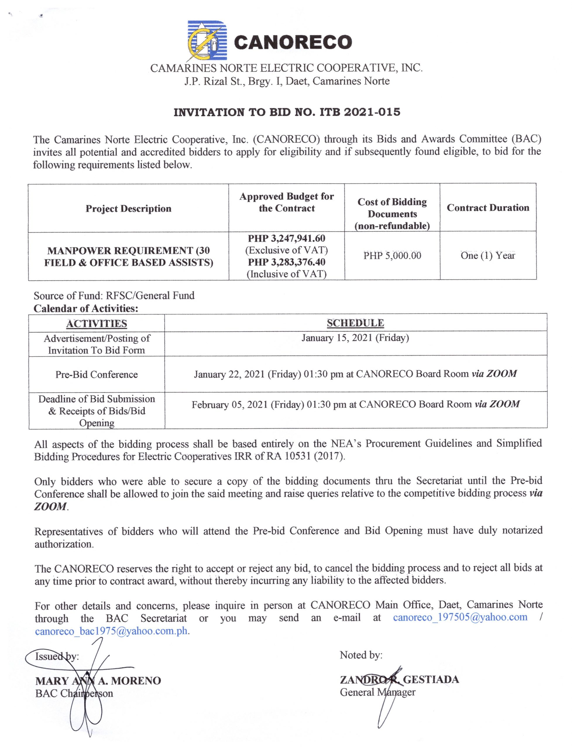 on ITB 2021-015