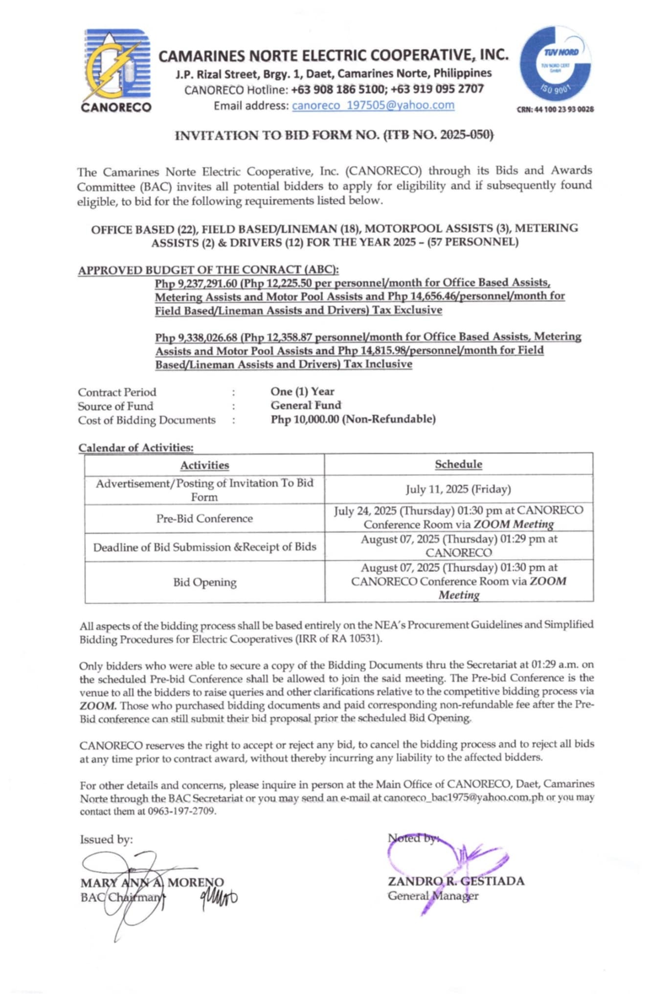 Invitation to Bid ITB NO. 2025-050 Posted on July 11, 2025July 12, 2025 Author Comments Off on ITB NO. 2025-050