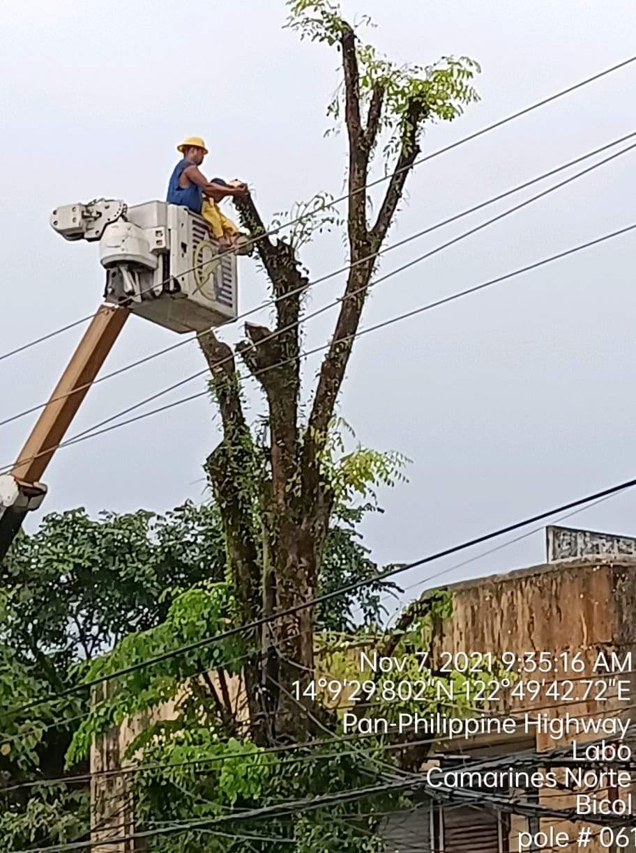 Sa kabila ng pag-ulan ngayong umaga ng November 7, 2021 (Linggo), nagre-relocate ng mga poste ang mga CANORECO technical personnel sa bayan ng Labo kasabay ng scheduled power service interruption ng National Grid Corporation of the Philippines (NGCP).