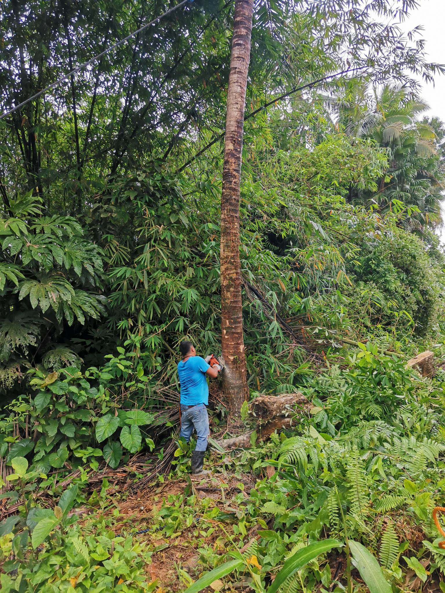 TINGNAN. Ang pagpuputol ng mga punong kahoy sa loob ng 69kV sub-transmission line standard clearance sa Brgy. Masalong, Labo ngayong araw, December 22, 2022 upang mabawasan ang mga posibleng maging dahilan ng biglang pagkawala ng kuryente.