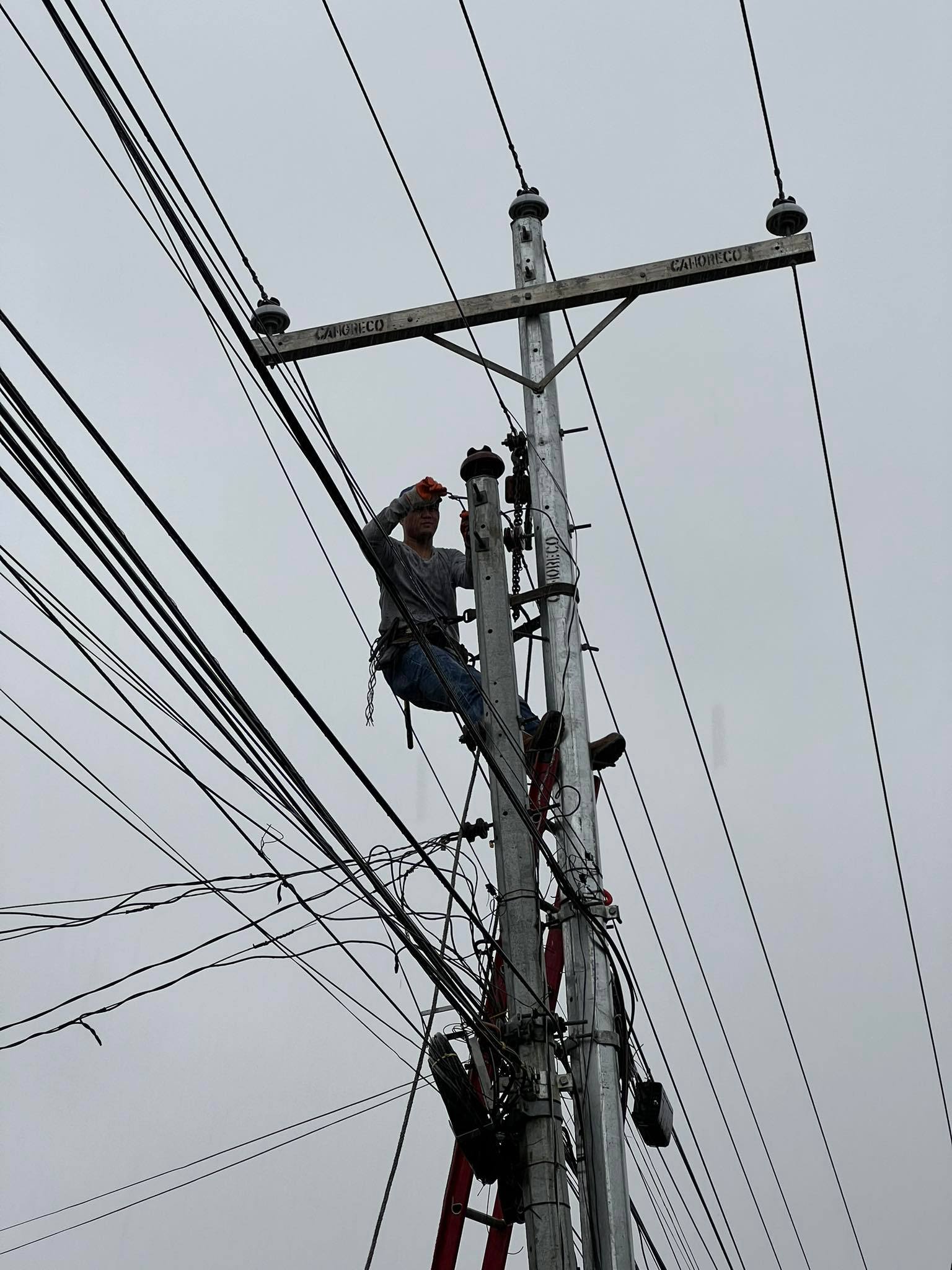 TINGNAN. Ang pagre-reconnect ng naputol na underbuilt line sa Brgy. San Felipe, Basud ngayong araw, January 3, 2022, sa gitna ng pagbuhos ng ulan.