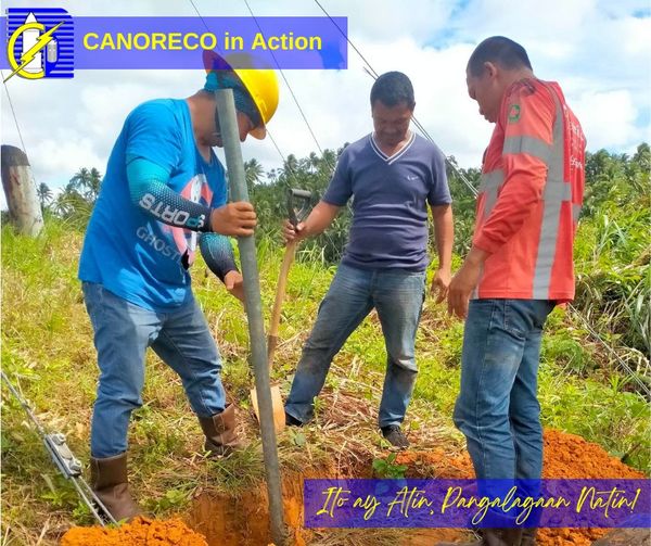 ππππππππ π’π§ ππππ’π¨π§. Replacement ng anchor rod at anchor log sa may pole no. 114 sa Brgy. Sta. Rosa Norte sa Jose Panganiban na isinagawa ng CWMPC Clearing Team nila Linemen J. Nagera, A. MatuciΓ±o at V. Aberia. At installation ng “Hosanahan” sa Magallanes Iraya corner F. Pimentel sa Daet na isinagawa ng CWMPC Clearing Team nila Foreman A. Tablizo at Linemen J. Lagumen at N. Jarcia. Mga isinagawa noong 24 March 2023.