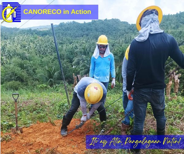 𝐂𝐀𝐍𝐎𝐑𝐄𝐂𝐎 𝐢𝐧 𝐀𝐜𝐭𝐢𝐨𝐧. Replacement ng anchor rod at anchor log sa may pole no. 114-3-d sa Brgy. Sta. Rosa Norte sa Jose Panganiban noong 27 March 2023 na isinagawa ng Team nina Foreman A. Tablizo at Linemen J. Lagumen at N. Jarcia.