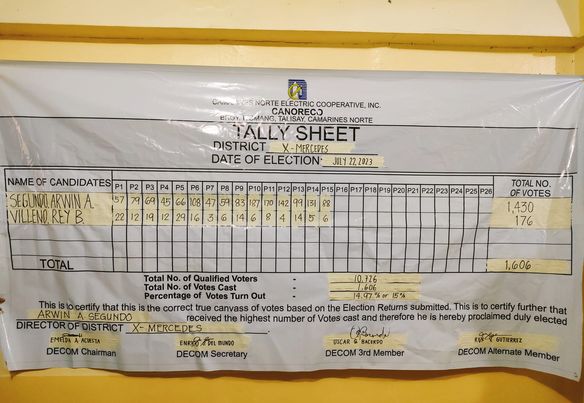 Sa resultang ito ng naganap na eleksyon, si Mr. Arwin A. Segundo po ang magsisilbing Representative ninyo at ng inyong bayan sa ating kooperatiba sa loob ng tatlong taon bilang bahagi ng ating Board of Directors.