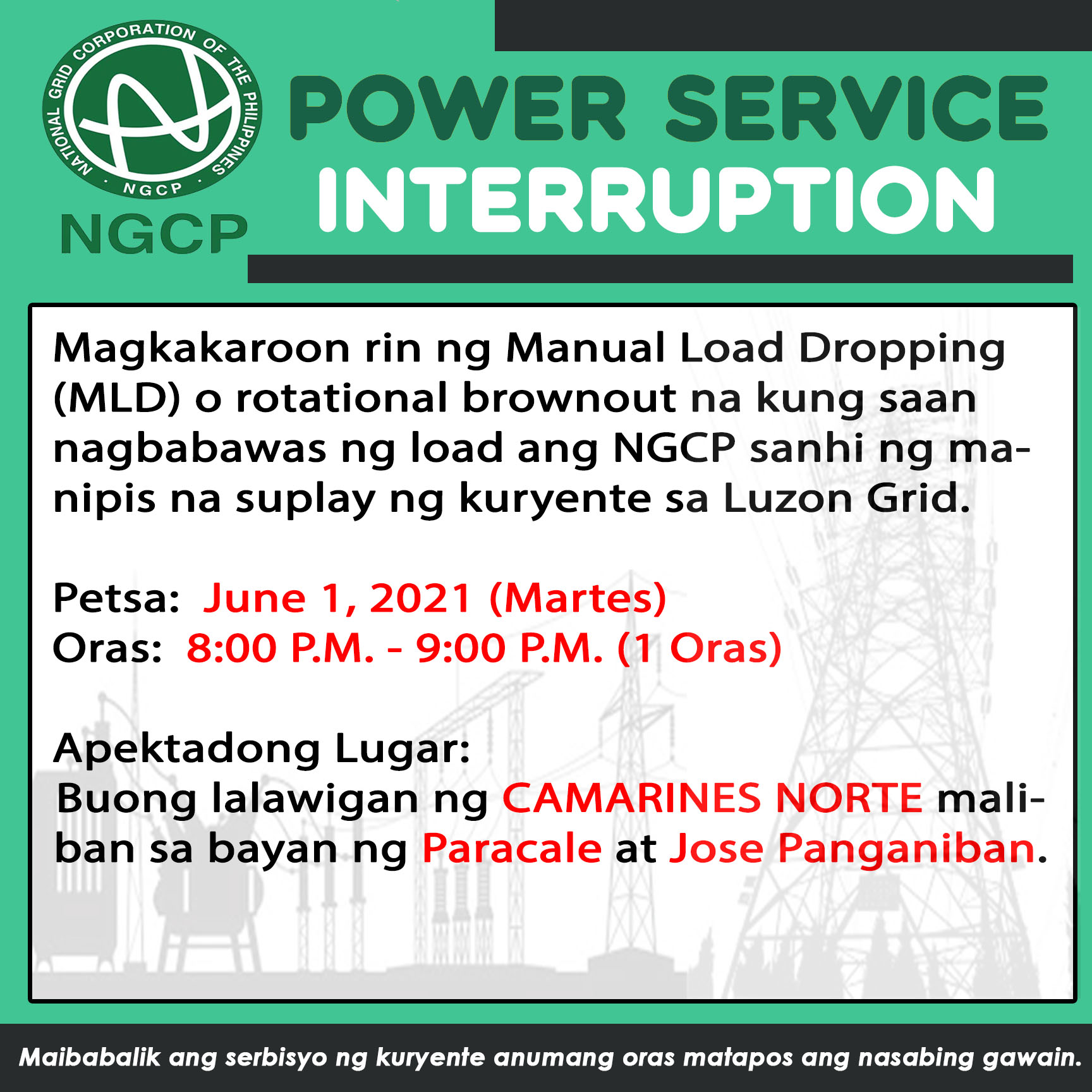 Magkakaroon rin ng Manual Load Dropping (MLD) o rotational brownout na kung saan nagbabawas ng load ang NGCP sanhi ng manipis na suplay ng kuryente sa Luzon Grid.