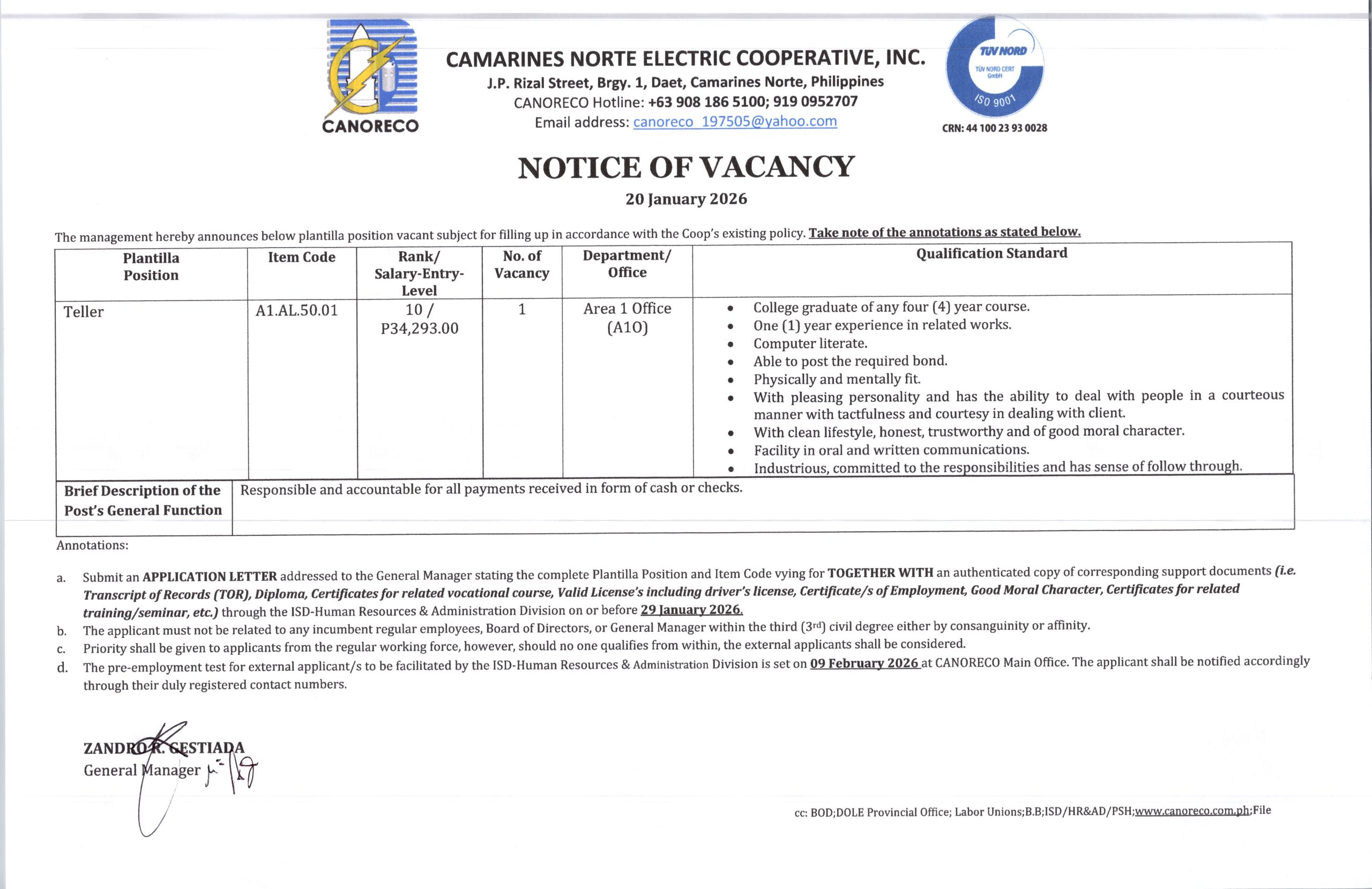 Notice of Vacancy_Teller dtd 01202026