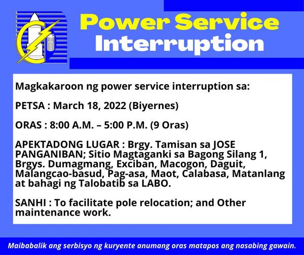 Magkakaroon ng power service interruption sa: