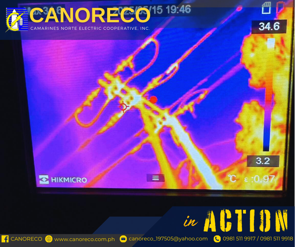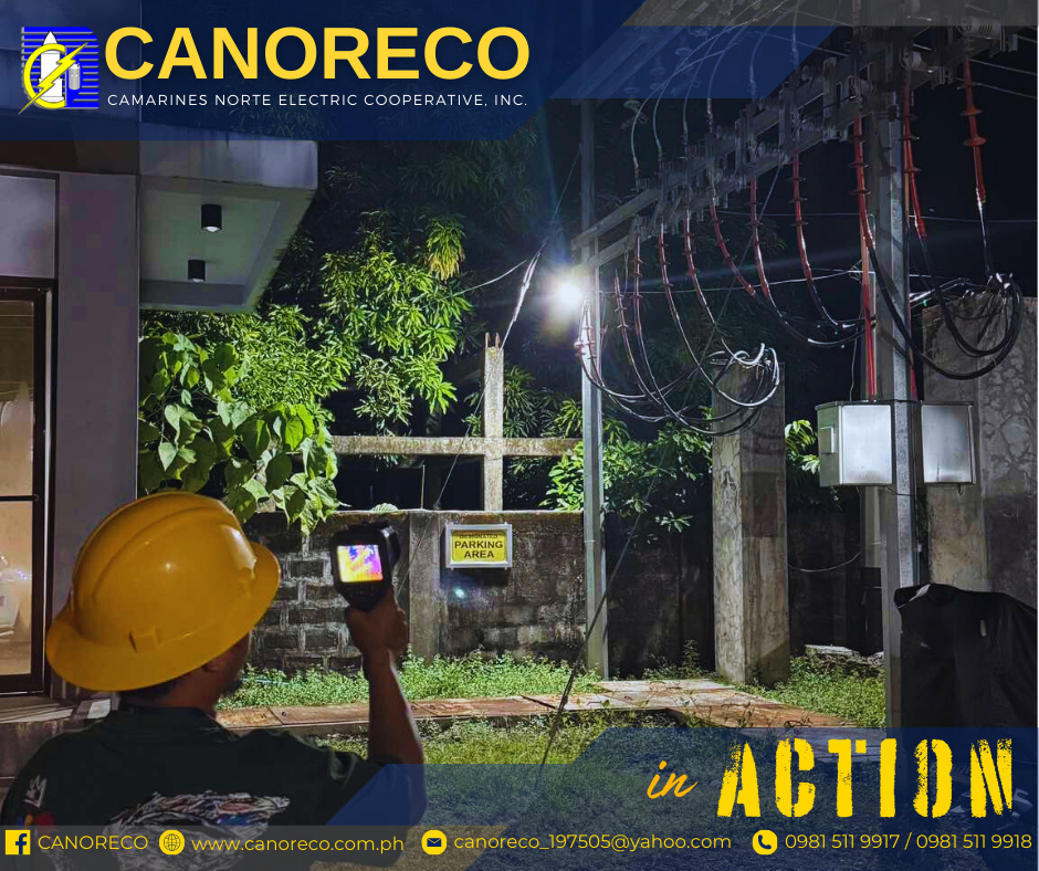 Ilang larawan sa isinagawang Thermal Scanning sa Substation at sa mga Bypass Switches and Reclosers sa Brgy. Santo Domingo (Vinzons), Brgy. Bautista, at Poblacion ng Labo sa pamamagitan ng ating mga personnel mula sa Technical Services Department (TSD) noong Huwebes (15 May 2025).