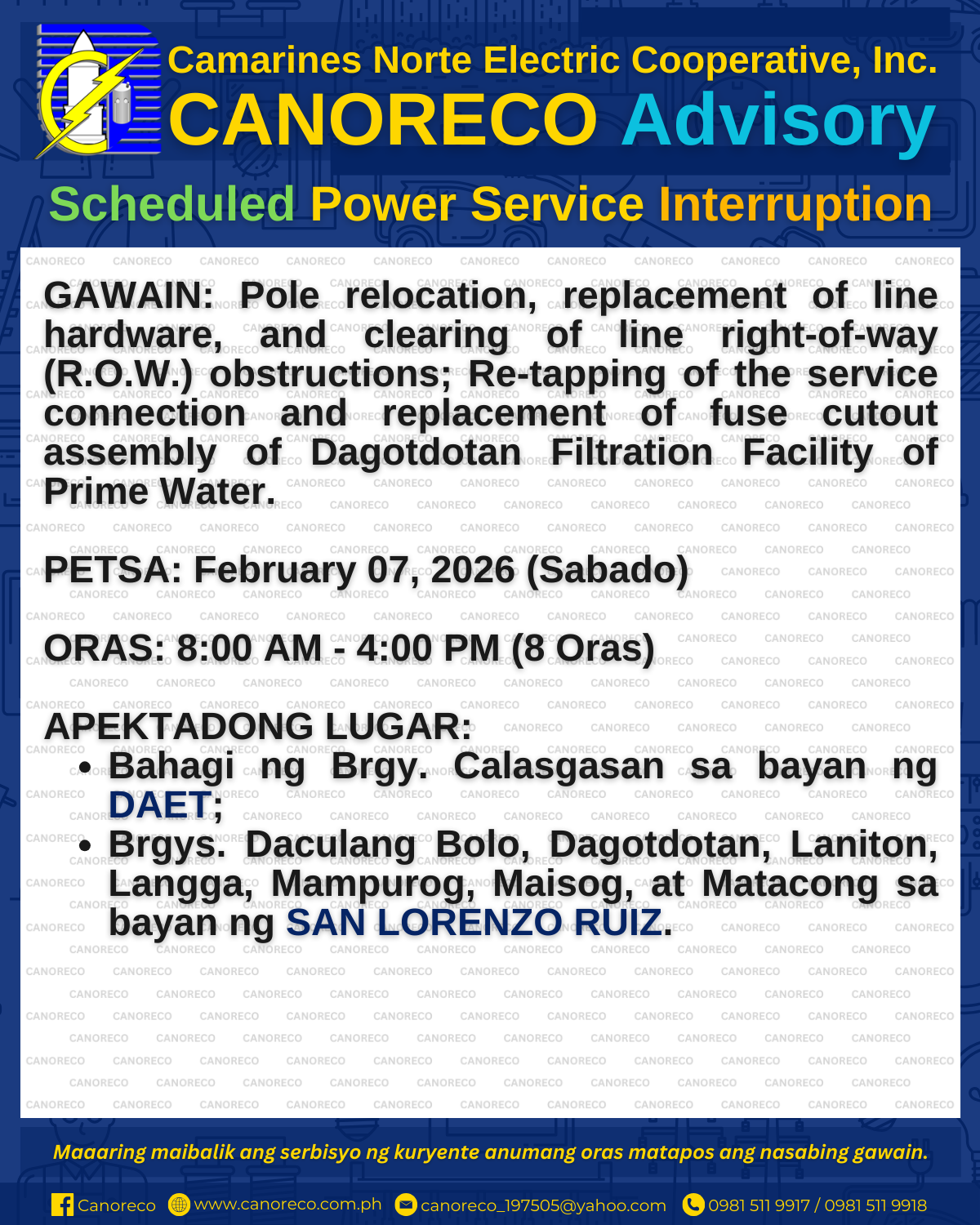 Maaaring maibalik ang serbisyo ng kuryente anumang oras matapos ang nasabing mga gawain.