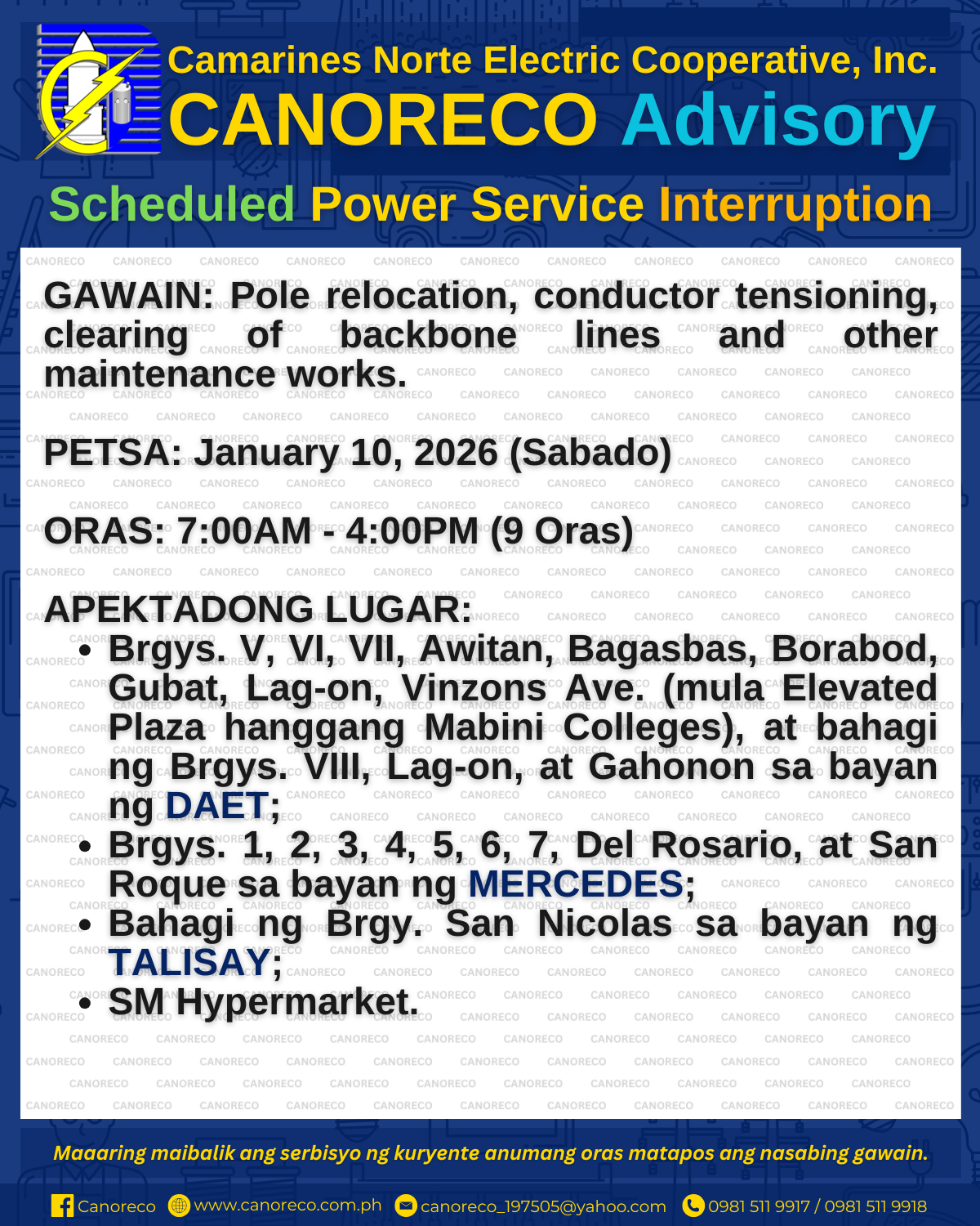 Maaaring maibalik ang serbisyo ng kuryente anumang oras matapos ang nasabing mga gawain.