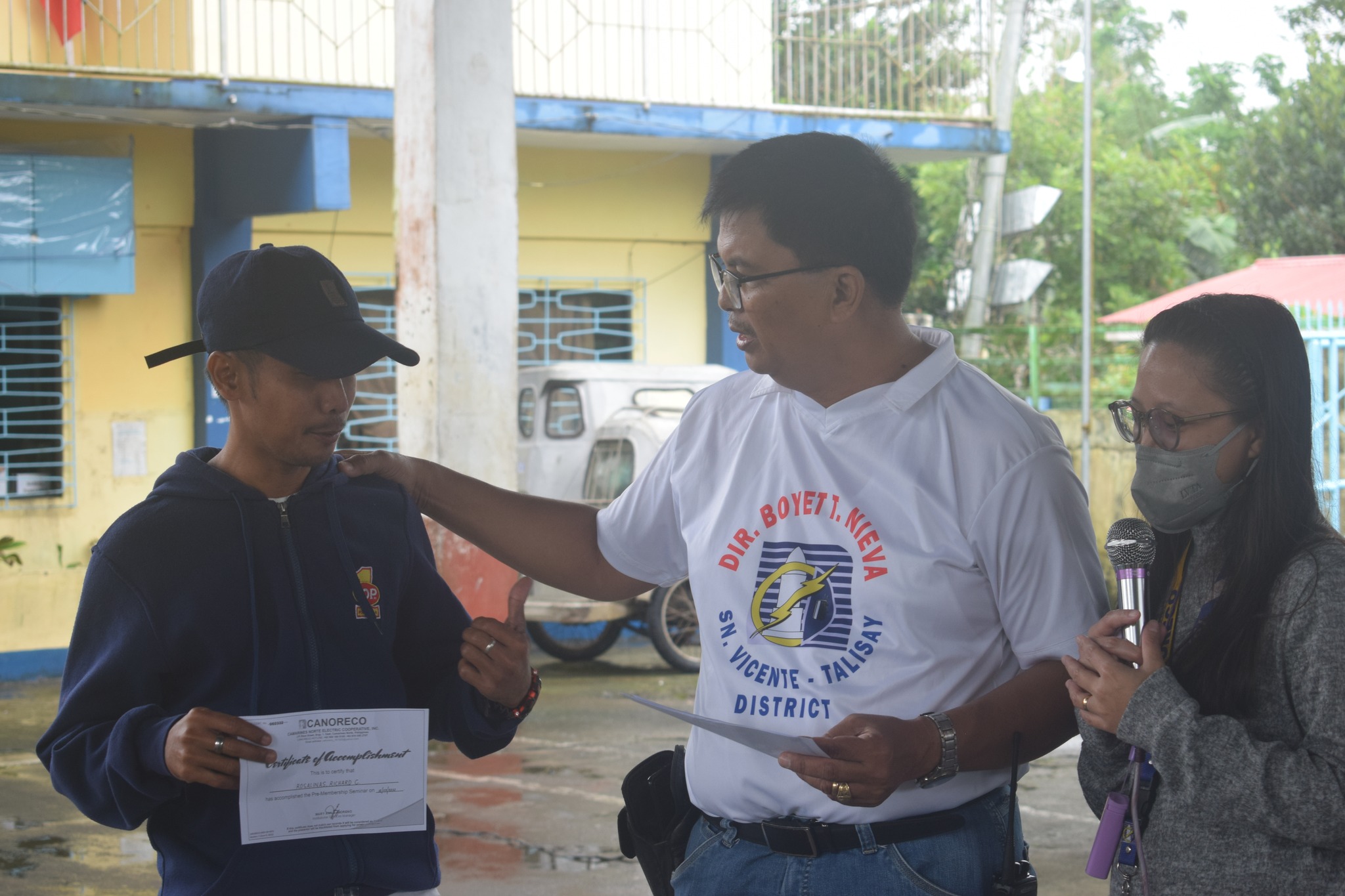 TINGNAN. Ang naganap na Pre-Membership Seminar (P.M.S.) kaninang umaga, December 23 (Biyernes), sa Barangay Man-ogob sa bayan ng San Vicente kasama ang Director ng District V (San Vicente/Talisay) na si Director Bartolome Armin “Boyet” T. Nieva at Punong Barangay ng Barangay Man-ogob na si Hon. Sonny E. Cortez.