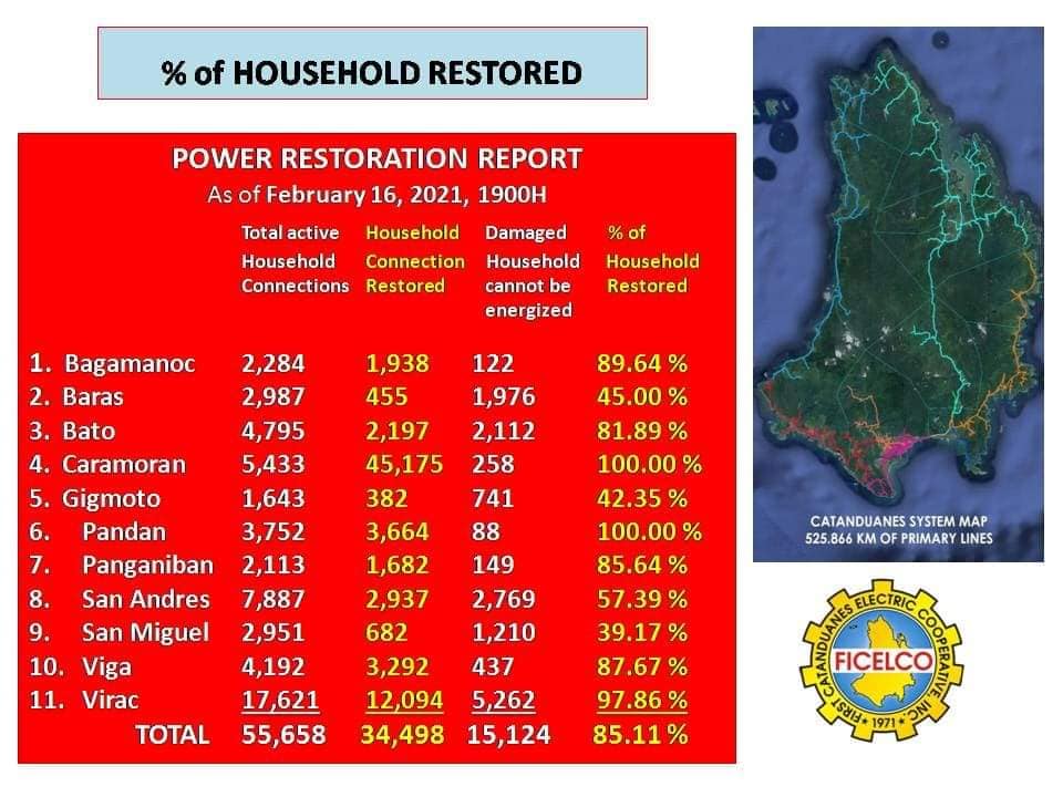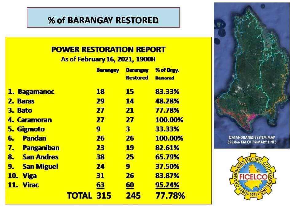 Muli na namang nagpadala ang CANORECO ng isang grupo ng Task Force noong February 17, 2021 sa First Catanduanes Electric Cooperative Inc. (FICELCO). Mananatili sila sa San Andres, Catanduanes, kung saan sila in-assign, hanggang February 28, 2021.