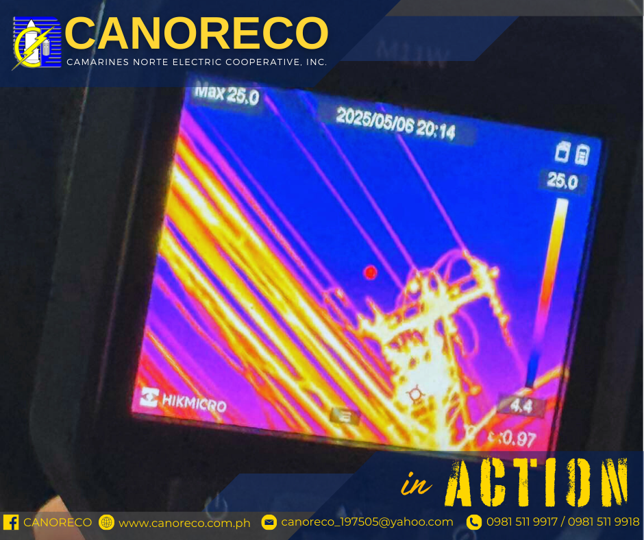 Ilang larawan sa isinagawang Thermal Scanning sa pamamagitan ng ating mga personnel mula sa Technical Services Department (TSD) kagabi (06 May 2025, Martes) sa mga Bypass Switches and Reclosers sa ating Substation.